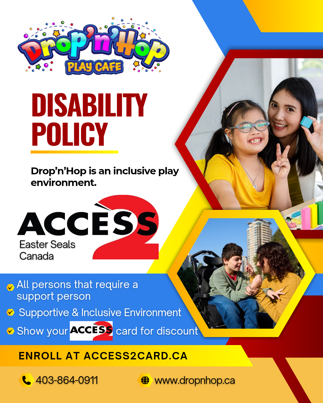 Drop ‘n’ Hop Play Cafe is Central Alberta’s local indoor playground and activity centre located in the town of Sylvan Lake. We offer all-day playground admission, 2-Multi-Sport simulators (pay for play) ages 3 and up. We can host your next birthday party in one of our party rooms or you are welcome to rent the entire facility after hours for larger groups.